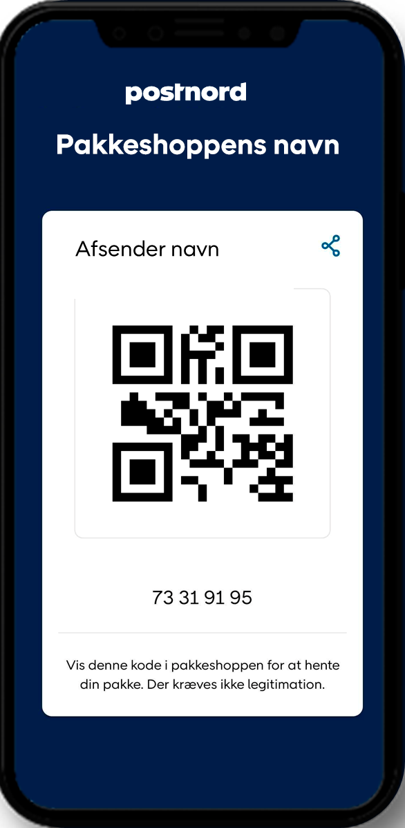 • If you click the link in the SMS or email, you will receive a QR code, which you show at the parcel shop. The message comes from PostNord and contains information about the sender, parcel shop, or parcel locker. The link will always start with postnord.com.
